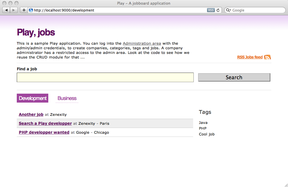 A fully-featured job board application that uses the CRUD module to automatically generate the administration area.