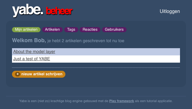 The ‘Yet Another Blog Engine’ admin interface in Dutch (above) and French (below).