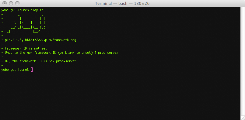 この問題を解決するため、Play ではインストールしたフレームワーク毎に ID を与えることができます。この ID を定義するためには、play ツールの id コマンドを使用してください: