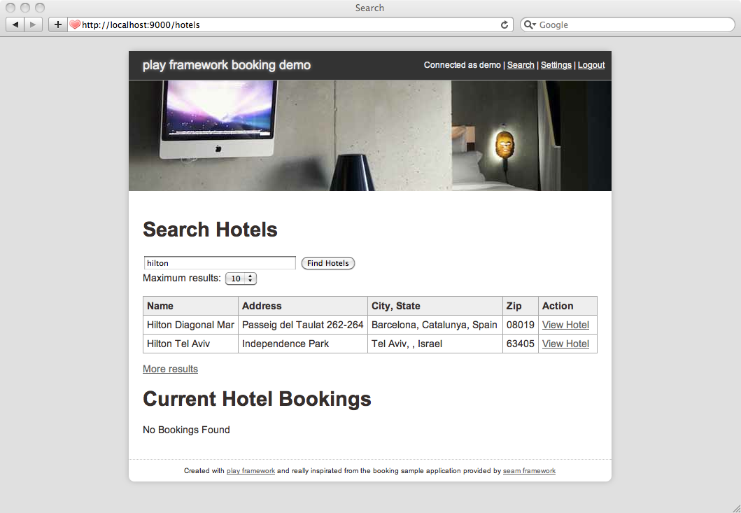 この 予約 アプリケーションは、有名な JBoss Seam フレームワークの予約アプリケーション を移植したものです。