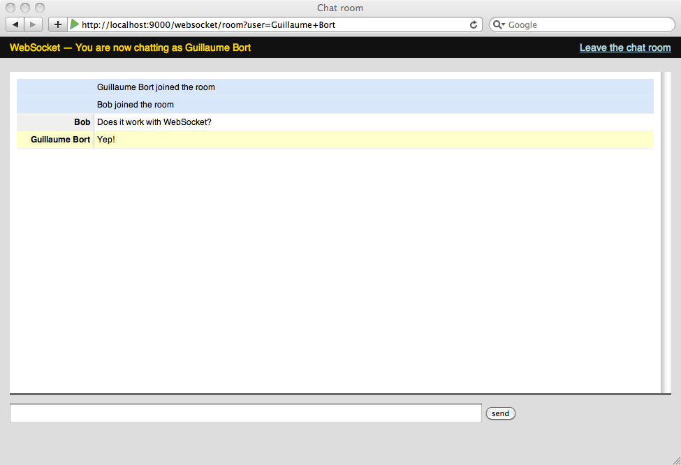 WebSockets は、ブラウザとアプリケーション間の双方向コミュニケーションチャネルを開く方法です。WebSockets は Play アプリケーションでサポートされるようになりました。
